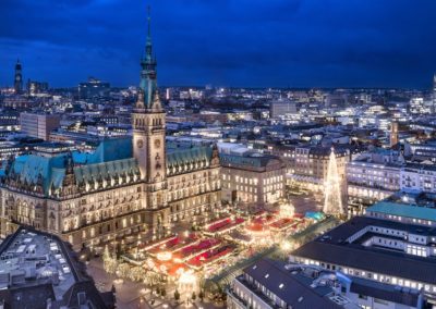 Συγκέντρωση στο αεροδρόμιο και απευθείας πτήση για το Αμβούργο. Άφιξη και πανοραμική ξενάγηση στην πόλη που αποτελεί το σημαντικότερο λιμάνι της Γερμανίας. Η ξενάγησή μας με πούλμαν και εν μέρει με τα πόδια στο κέντρο της πόλης, περιλαμβάνει έναν γοητευτικό συνδυασμό από ιστορικά κτίρια, πρωτοποριακής αρχιτεκτονικής κτίσματα, τους δρόμους με τα εξόχως πολυτελή και ακριβά καταστήματα και καταλήγει στην πραγματική καρδιά του αστικού κορμού, στις λαϊκές γειτονιές των ναυτών και την γνωστή Ρέπερμπαν με τα κόκκινα φανάρια. Μεταφορά και τακτοποίηση στο ξενοδοχείο μας. Κατόπιν θα επισκεφθούμε την Ιστορική χριστουγεννιάτικη αγορά του Αμβούργου (Historischer Weihnachtsmarkt am Rathaus). Διανυκτέρευση.